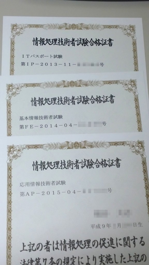 この春行われた応用情報技術者試験に見事合格することができました!!゚+。(o’д’ノノ゙☆パチパチパチ。+゚