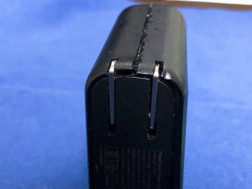 そんな絶大な人気を誇るPowercore Fusionですが、半年くらい前からバッテリーの機能が使えなくなっていました。18ヶ月の保証期間もとっくに切れていたのですが、PowerIQがあるため充電器としては優秀なことから使い続けていました。つい先日RAVPOWERでUSB-AとUSB-Cが1ポートづつ出力端子としてついており、65Wと高出力でありながら5.5cm*5.5cm*3.1cmの小型サイズ、更には3500円(キャンペーン価格)との激安価格であったことから、この度充電器を買い替えました。